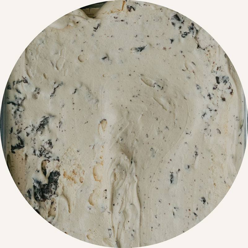 Rich dulce de leche ice cream with broken bits of dark chocolate.